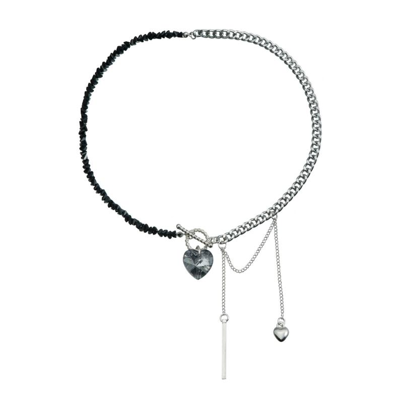 Lightweight Comfortable Alloy Heart Shaped Necklace Mirrored Glass Crystal Beads Clavicle Chain For Daily Wear