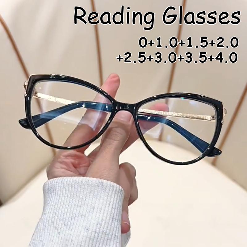 New Fashion Cat-Eye Anti-blue Light Reading Glasses Women's Metal Full Frame Versatile and Elegant Eyeglasses 0 To +4.0