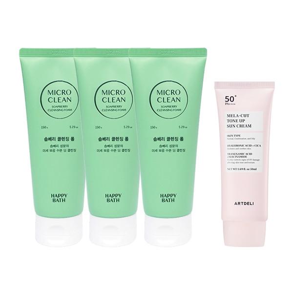 HAPPY BATH Micro Clean Soapberry Cleansing Foam 150g x3 + ARTDELI Melacut Sunscreen 50ml