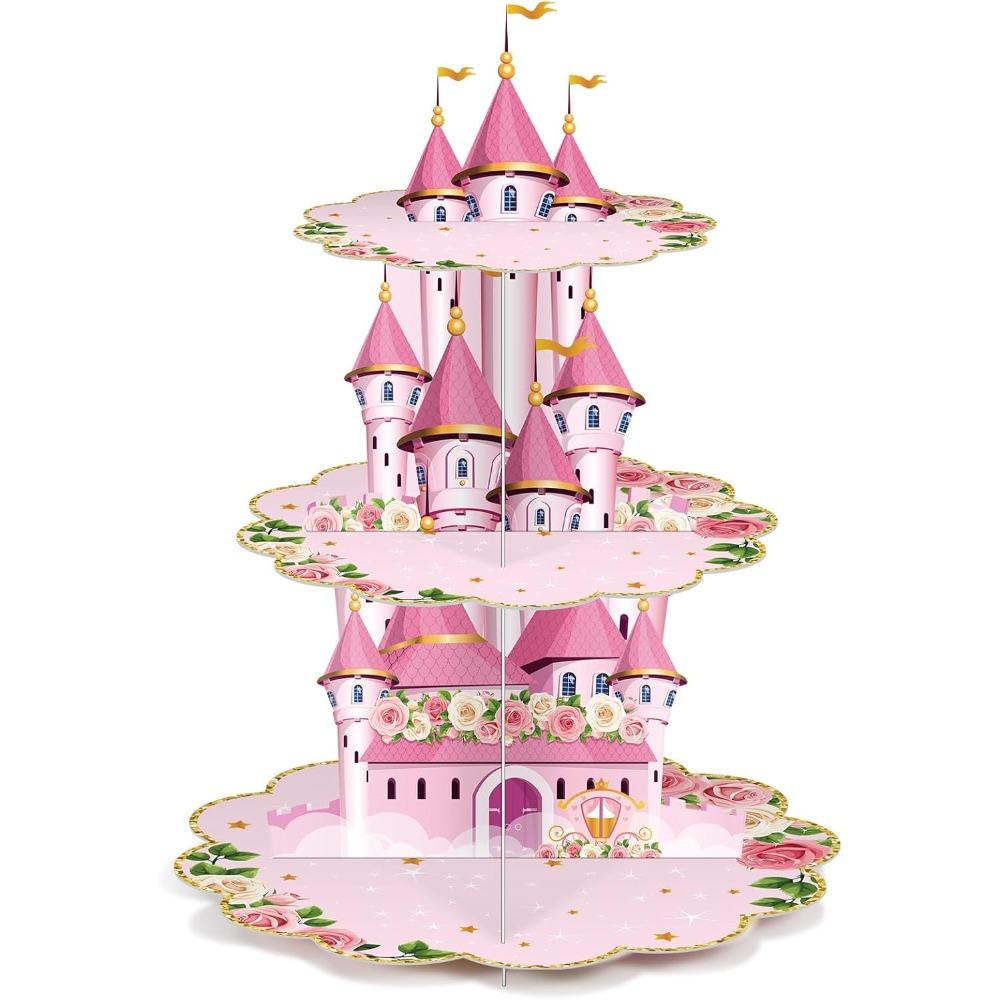 3 Tier Princess Birthday Cupcake Stand Party Decorations Floral Princess Cupcake Holder Pink Castle Crown Carriage Dessert Tower