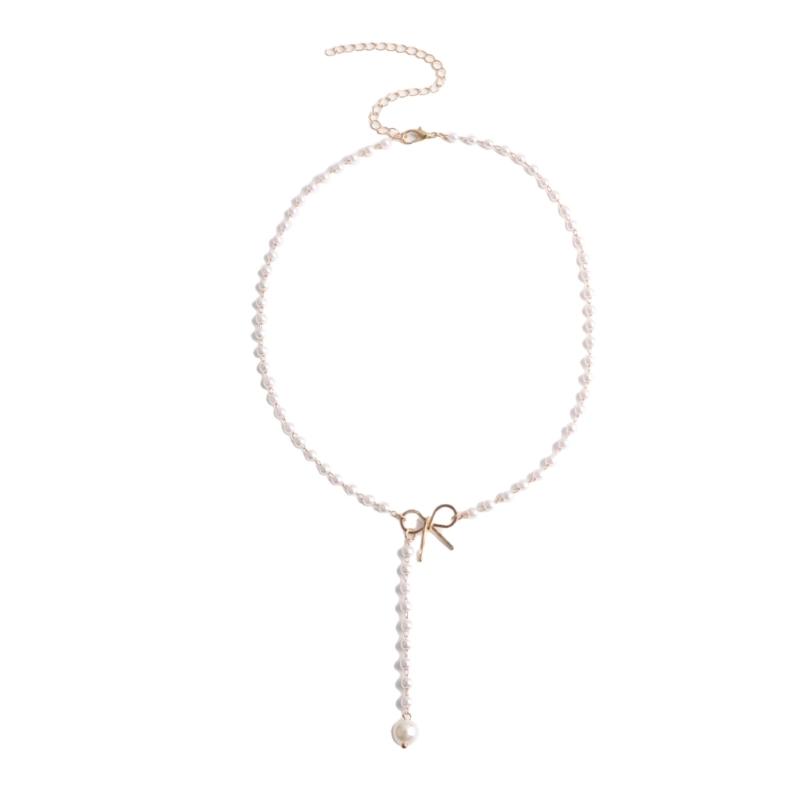 Sweet Bowknot Tassels Pendant Necklace Fashion Pearls Chain Choker Simple Collar Necklace Clavicle Chain Party Jewelry