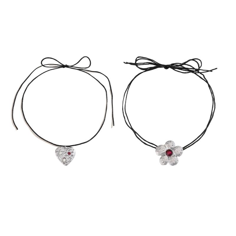 Basit İnce İp Kolye Metal Çiçek Uçlu Choker Modaya Uygun Statement Boyun Takısı Modaya Düşkün Sevgili İçin Mükemmel