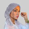 Thread Four Bars Long Tail Pile Cap Solid Color Women Hijab Bonnet 2024 Pleated Ruffle Turban