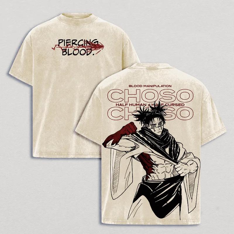 Choso Jujutsu Kaisen Anime Printed T-shir Gothic Y2k Washed Oversized T Shirt Men Unisex Clothing Short Sleeve Cotton Tees Tops