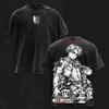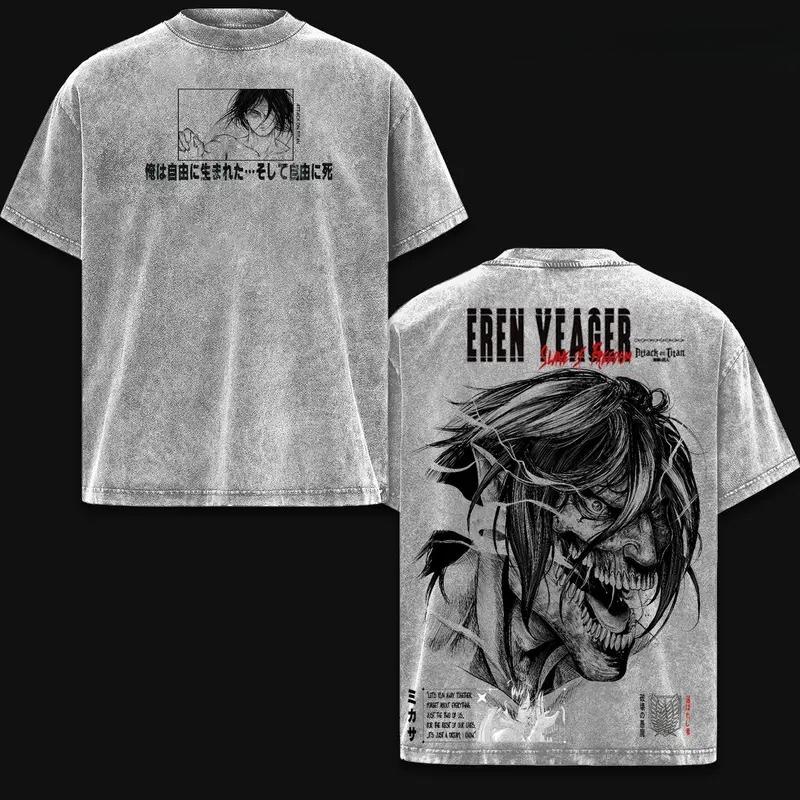 Hot Anime Attack on Titan Eren Jaeger Graphic Tee Men Clothing Washed Cotton Tshirt Casual T-shirt Harajuku Male Vintage T Shirt