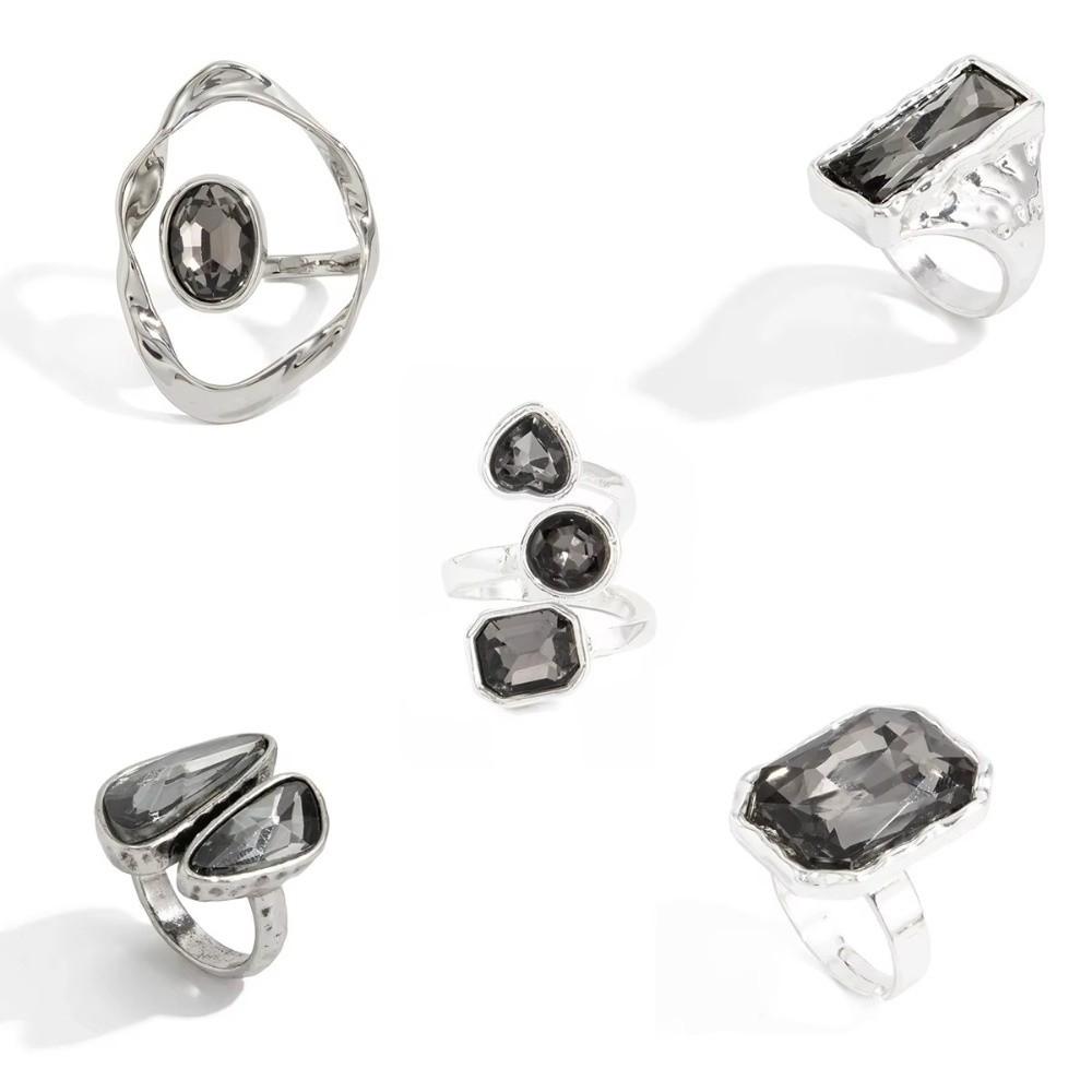 Grey Crystal Geometric Ring Goth Crystal Open Rings Fashion Accessory Finger Ring Women