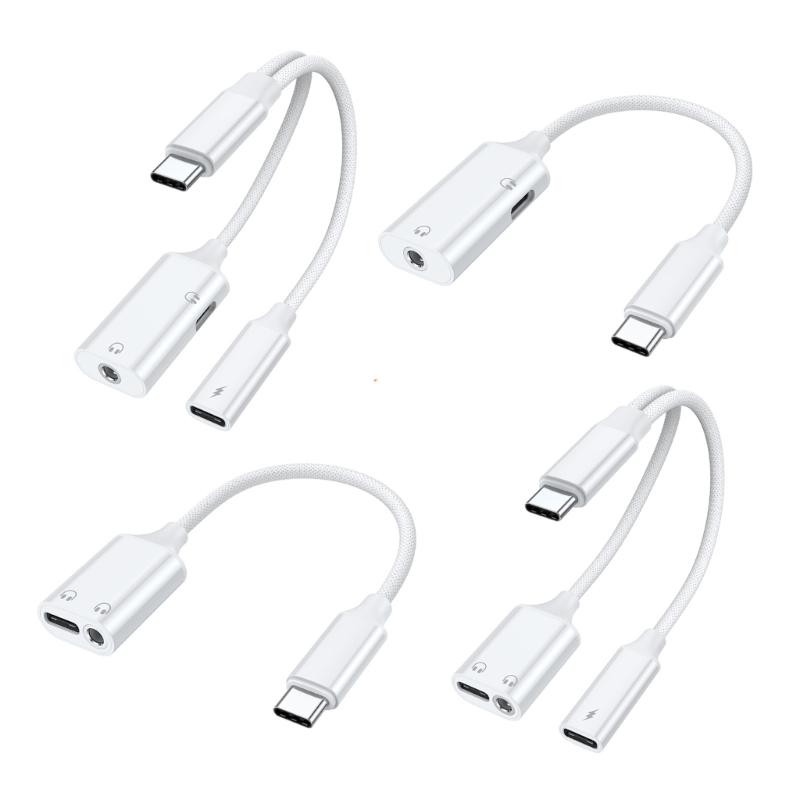 Type C Headphone Jacks Splitter PD60W Power Delivery HiFi Sound Nylons Braids Cable Simultaneous Charging Sound Use