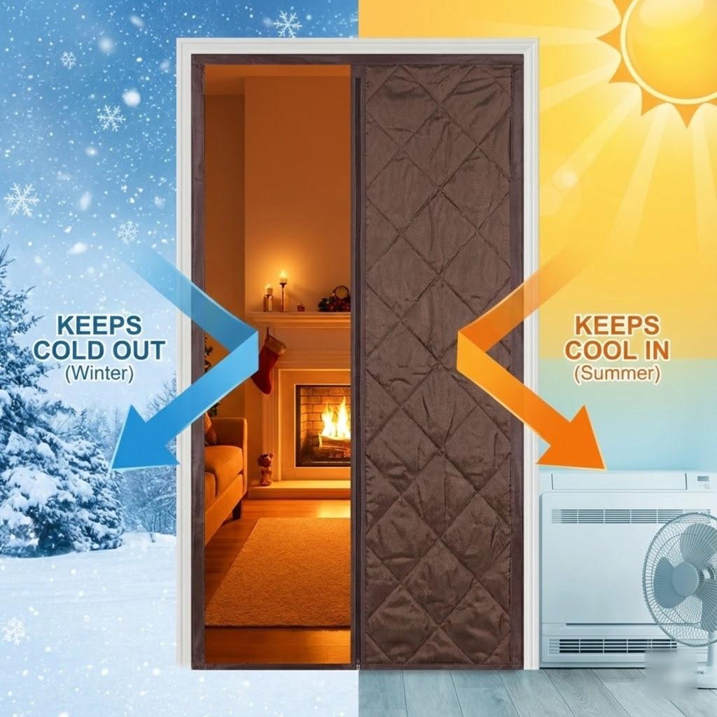 Magnetic Thermal Insulated Door Curtain for Winter Summer Door Cover Hands Free Waterproof Energy Saving Privacy Screen
