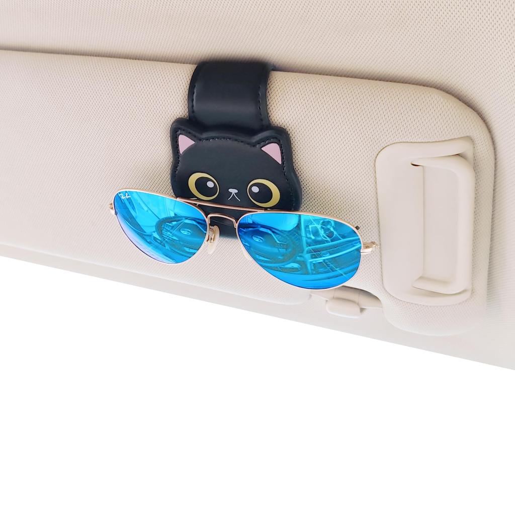 Cute Car Sunglasses Holder with Magnetic Leather Sunglasses Ticket Card Easy Installation Clip, Clip, (A)