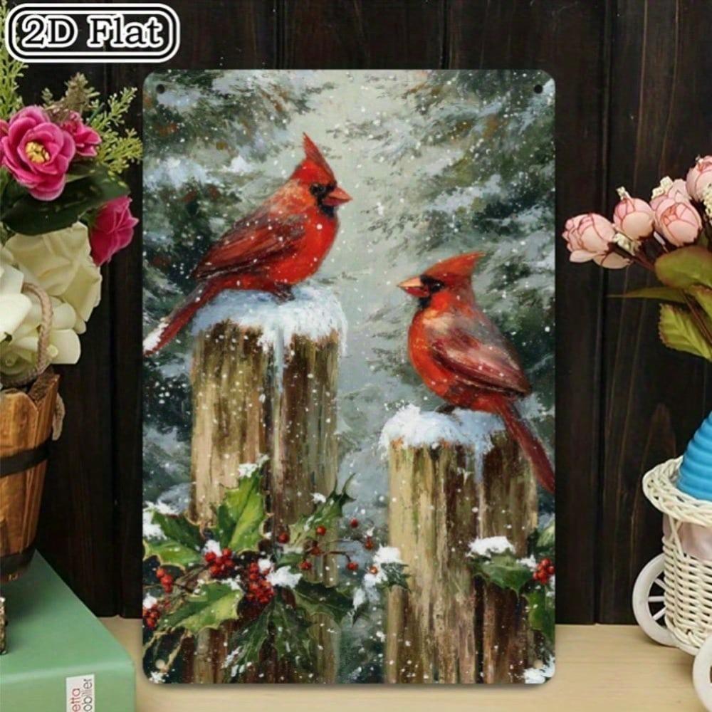 Vintage Metal Tin Sign, 12x8 Inch Cardinal Bird Winter Scene, Rustic Farmhouse Wall Decor for Christmas, Indoor Outdoor Holiday Gift