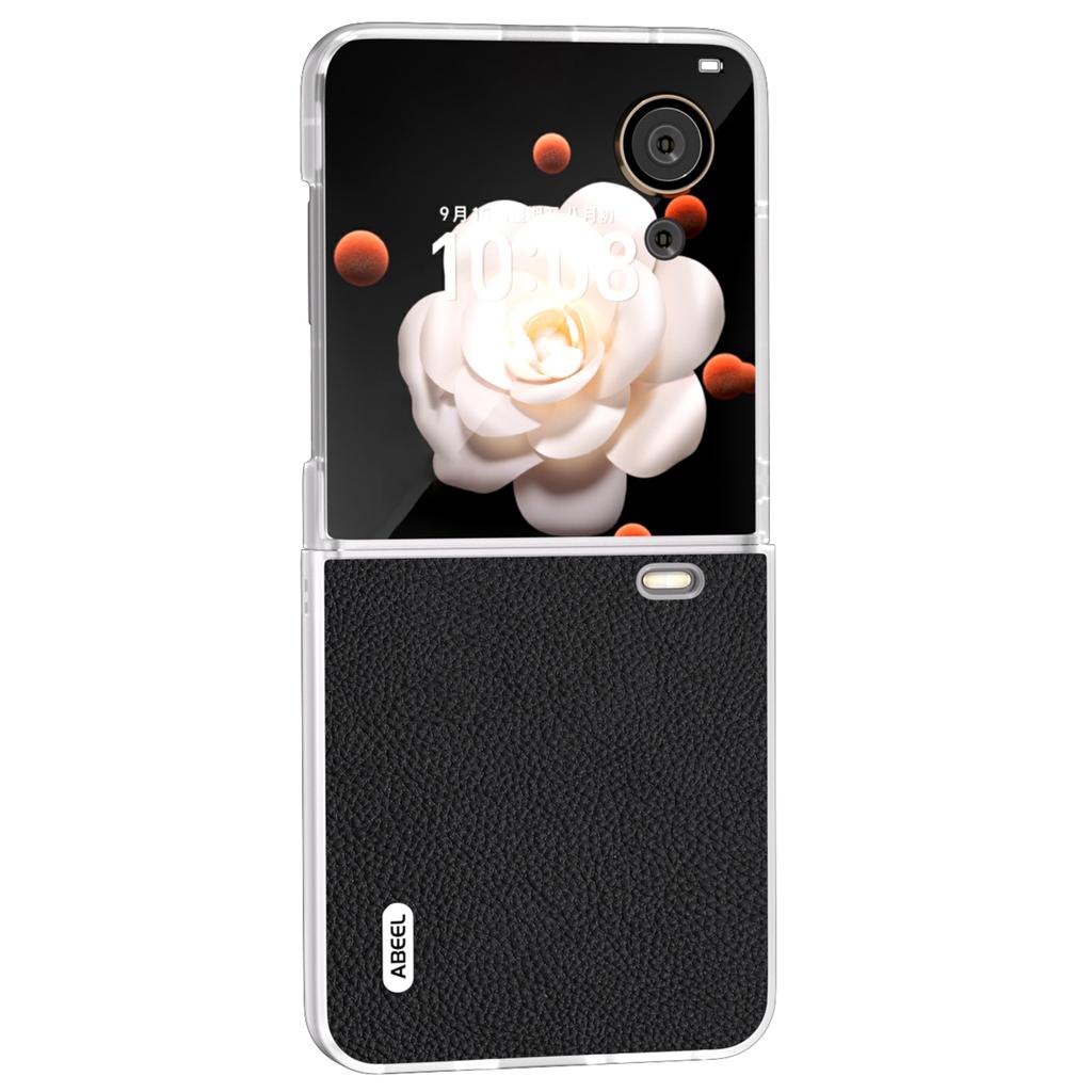 ABEEL For Honor Magic V Flip 5G Case Litchi Texture Genuine Cow Leather+PC Phone Cover