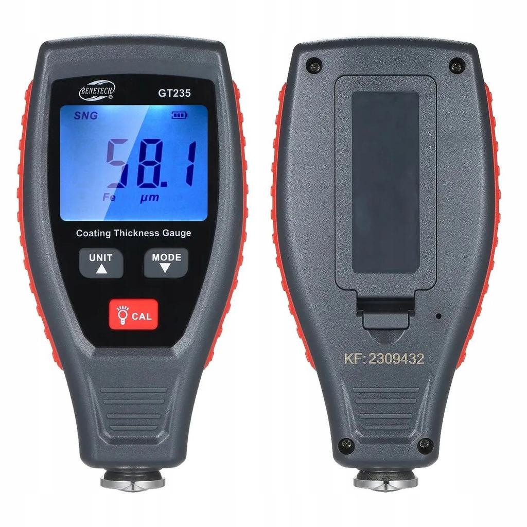 PROFESYONEL KALINLIK ÖLÇER KAPLAMALAR - BOYA VE DİĞER MALZEMELER Taşınabilir boya kaplama kalınlık ölçer Benetech GT235, manyetik olmayan metal bir alt tabaka üzerindeki metalik olmayan bir kaplamanın kalınlığını ve manyetik metal bir alt tabaka üzerindeki metalik olmayan bir kaplamanın kalınlığını ölçmek için hızlı ve doğru bir cihazdır. Test cihazı, manyetik ve manyetik olmayan metal alt tabakayı otomatik olarak tanımlayabilir. . Otomotiv endüstrisinde, metal işleme endüstrisinde, kimya endüstrisinde, emtia denetiminde vb. yaygın olarak kullanılır.. BOYA KALINLIĞI ÖLÇERİN ÖZELLİKLERİ VE FONKSİYONLARI: Manyetik metal alt tabaka üzerindeki manyetik olmayan kaplamanın kalınlığının ölçülmesi. Manyetik olmayan metal alt tabaka üzerindeki metalik olmayan kaplamanın kalınlığının ölçülmesi. Manyetik olmayan metal alt tabaka ve manyetik metal alt tabakanın otomatik tanımlanması. Tek ölçüm SNG , sürekli ölçüm CTN ve diferansiyel ölçüm DIF . Sıfır noktası kalibrasyonu, ofset kalibrasyonu ve temel kalibrasyon. İsteğe bağlı Metrik ve İngiliz birimleri (Birleşik Krallık'ta kullanılmış). LCD arka ışığı . Otomatik kapanma özelliği . KIT İÇERIĞI: 1x Boya kaplama kalınlık ölçer GT235 2x 1.5V pil 0.05mm ile 2.00mm arasındaki boyutlarda 6x kalibrasyon plakası Lehçe kullanım kılavuzu Ambalaj: Kılıf Kordon KAPLAMA KALINLIĞI ÖLÇER TEKNİK ÖZELLİKLERİ: LCD ekran: evet Ölçüm aralığı: 0~1.8 mm Ölçüm çözünürlüğü: 0.1 μm ( mikron), 1 μm (≥100μm) / 0,001 mm Ölçüm hatası: 150 ±5μm ±%3H + 1 μm Min. manyetik taban çapı: 12 mm Min. substrat kalınlığı: 0,5 mm Min. dış bükey alt tabakanın eğrilik yarıçapı: 2mm En Az. iç bükey alt tabakanın eğrilik yarıçapı: 11mm En Az. alt tabaka çapı manyetik olmayan alt tabaka: 50mm En Az. manyetik olmayan alt tabaka kalınlığı: 0,5 mm Çalışma sıcaklığı aralığı: -20 ~ 40°C - Ortam belirgin şekilde farklı bir ortama değiştirildikten sonra yeniden kalibrasyon önerilir Çalışma nem aralığı: %10-95 RH Güç kaynağı: 2x 1.5V AAA piller (sete dahil) Boyutlar: yaklaşık. 62 x 27 x 121,5 mm Ağırlık: 105g (piller olmadan) MUHAFAZA PARÇALARININ AÇIKLAMASI: LCD ekran BİRİM düğmesi (Birim Seçimi) / yukarı MOD düğmesi (mod seçimi) / aşağı / ekran çevirme Arka Işık / Kalibrasyon Düğmesi Sensör / Ölçüm Probu Kordon Deliği Pil Yuvası EKRAN AÇIKLAMASI: LCD ekran: SNG: Tek Ölçüm Koli: Sürekli ölçüm DIF: Diferansiyel ölçüm Kalibrasyonu başlat Pil durumu Ölçülen değer gösteriliyor Bağlantı simgesi nFE: Manyetik olmayan metal alt tabaka sembolü, FE: Manyetik metal alt tabaka sembolü mil: İmparatorluk birimi (Büyük Britanya'da kullanılır - 1 mil = 0,0254 mm) mikron: Metrik birim (1mm = 1000μm) aa: Metrik birim (1mm = 1000μm) SATIN ALMADAN ÖNCE KONTROL EDİN! Bir kalınlık ölçer, araba alırken hoş olmayan durumlardan kaçınmanıza yardımcı olacaktır.. Gelecekteki aracınızın boya durumunu kendiniz kontrol edebilir ve doğrulayabilirsiniz.. Cihaz sezgisel ve kullanımı kolaydır. Herkes bir araçtaki boyayı doğrulayabilir. Set, bir cihaz kalibrasyon kiti içerir, bu sayede ölçüm sonuçlarının her zaman doğru olduğundan emin olabilirsiniz.. Kalibrasyon sürecinin ayrıntıları, ürünle birlikte gelen kullanım kılavuzunda açıklanmaktadır.. Cihazlar fabrikada kalibre edilmiştir. BENETECH markası hakkında BENETECH gelişmiş ölçüm ve kontrol ekipmanları üreticisidir. Profesyonel, dijital ölçüm aletlerinin yanı sıra diğer elektronik cihazların uzman tedarikçisi. BENETECH POLAND, bu markanın Polonya ve Avrupa'daki yetkili ve doğrudan distribütörüdür.. Marka kataloğunda, diğerlerinin yanı sıra şunları bulacaksınız: pirometreler ve termal görüntüleme kameraları, anemometreler (rüzgar ölçerler), nem ölçerler ve higrometreler, gaz ve hava kalitesi dedektörleri ve ölçerler, sonometreler (desibel metreler) ve lüksmetreler (ışık ölçerler), lazer telemetreler ve takometreler, termometreler ve manometreler, kalınlık ve titreşim ölçerler (titreşim ölçerler), elektrikçinin aletleri ve kablo dedektörleri, elektromanyetik radyasyon ölçer, ev ve endüstriyel elektronik cihazları. Müşterinin talebi üzerine, üreticiden alınan ve İngilizce'ye çevrilmiş kalibrasyon raporunu ekte sunuyoruz.. Belgeyi birkaç gün sonra elektronik olarak alıyoruz.. Sipariş işlemlerinde gecikmeleri önlemek amacıyla, kalibrasyon raporunu siparişte belirtilen veya hesabınıza tanımlı e-posta adresine yaklaşık 7 iş günü içinde gönderiyoruz.. Üreticinin kalibrasyon raporu ücretsiz, isteğe bağlı bir belgedir ve bu nedenle bu teklife dahil değildir..