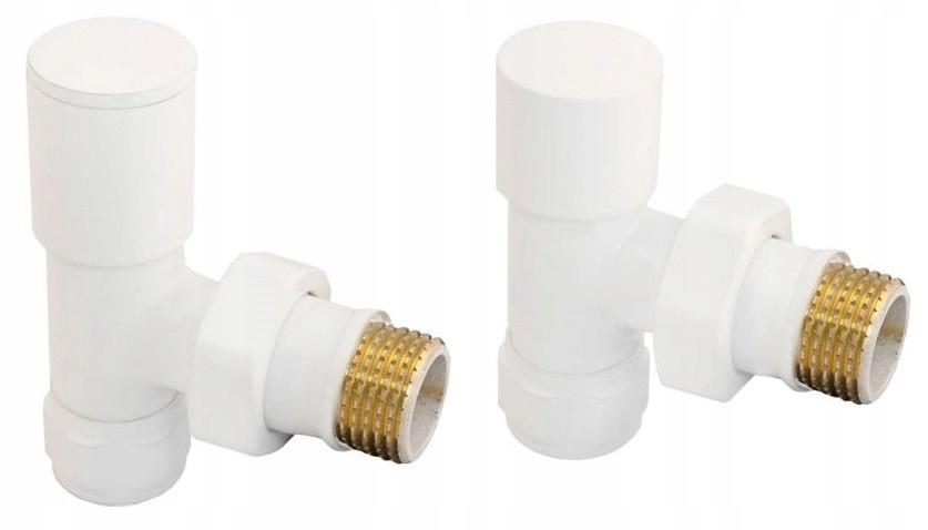 Set of angled radiator valves, white