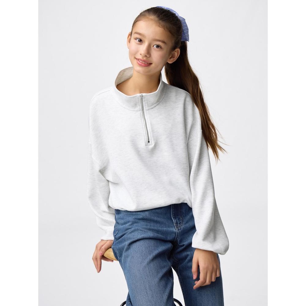 The GU Girls Puff Sweat Half Zip Pullover JR offers a soft and lightweight wearing experience.
