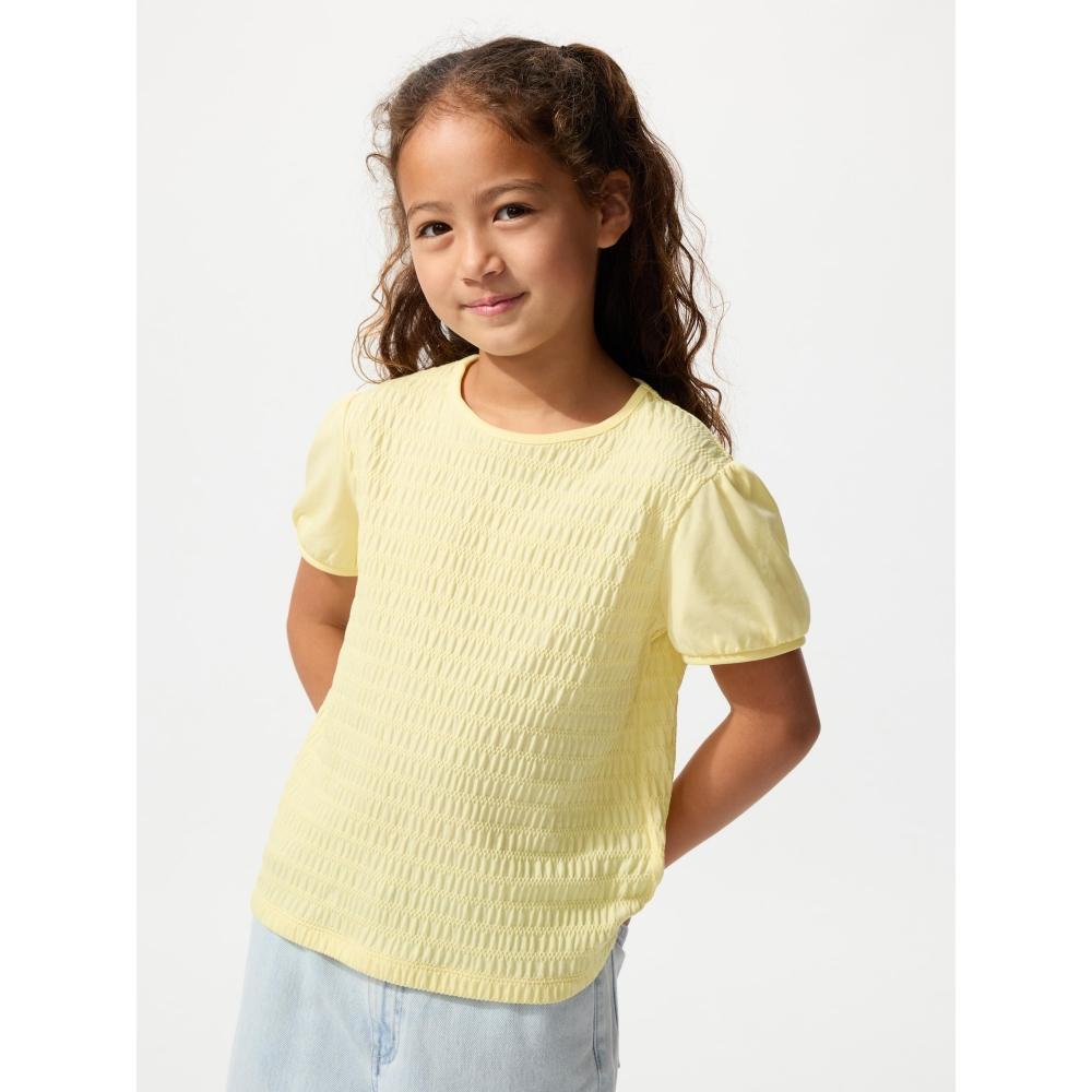 The UNIQLO Japan Girls Puff Sleeve T-Shirt is a short-sleeved shirt suitable for everyday styling.