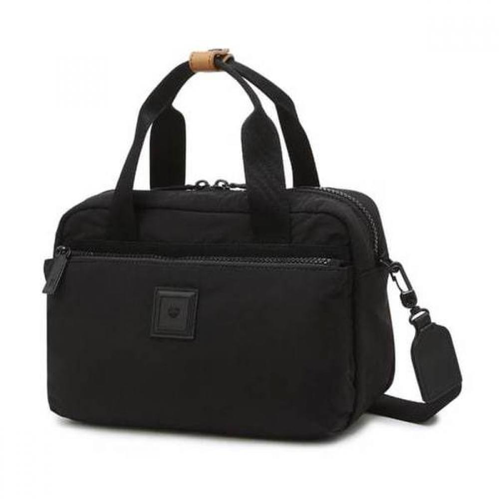 DBBA6EG30BK [Travel][AWAY] Black Dual-Zipper Tote and Crossbody Bag features a basic design with solid colors and a detachable strap for versatile styling. Made of lightweight and durable nylon, it is a compact item that is convenient to carry for travel or everyday use. It includes 4 internal pockets and 1 external pocket for added practicality, along with a dust bag for easy storage.