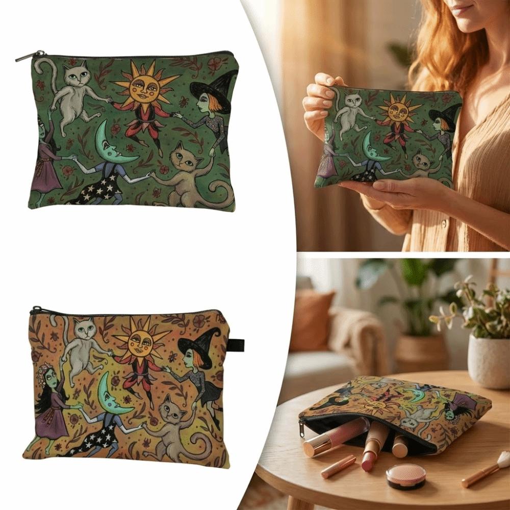 Cat and Moon Design Storage Bag Trendy Forest Bag New Makeup Bag Student Use