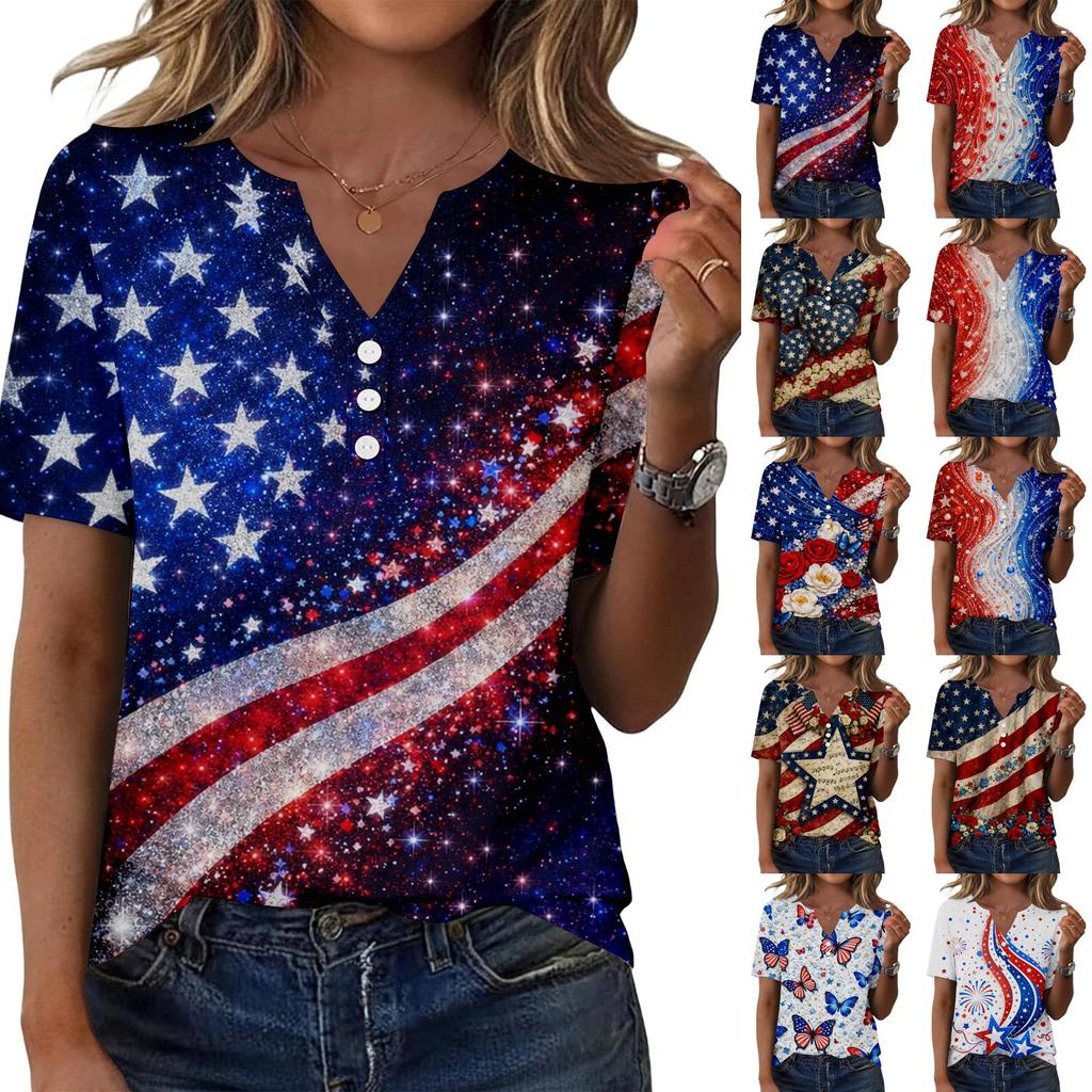 Women's fashionable casual short-sleeved Independence Day print V-neck top Describe: Material: Made of high quality material, and suitable for daily wear, made of soft fabric, polyester, light and comfortable, wardrobe , easy to dress up or take off, comfortable to wear all day. Occasion: This top is perfect for everyday, outing, party, work, casual wear. It's so random you might some extra covers! This one is available in a variety of colors to suit your personal . It is the best choice for gift giving Wash with cold water, the size will not change much, if you have any questions when choosing, welcome to consult Different monitors will have a little color difference, please don't mind Product information: Gender: Female Occasion: Casual Pattern Type: Solid color Length: Regular Fit: True to size Thickness: Standard Washing: Hand wash in cold water, hang or hang to dry You will get: 1 Women's Top Ote: There will be color difference between different screen displays, and there will be errors in manual measurement. Please refer to the size chart when purchasing!