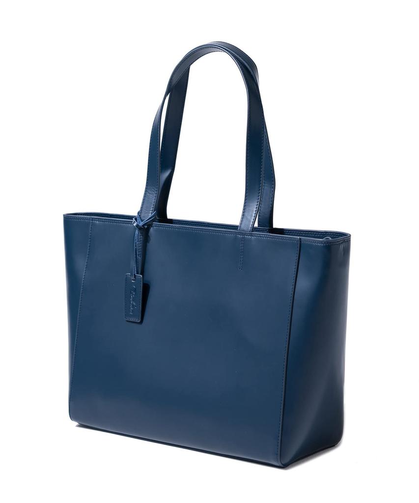 BARBERINI Men's Genuine Leather Business Tote Bag with Large Capacity, Freestanding YKK Zipper (Navy Blue)