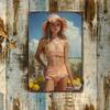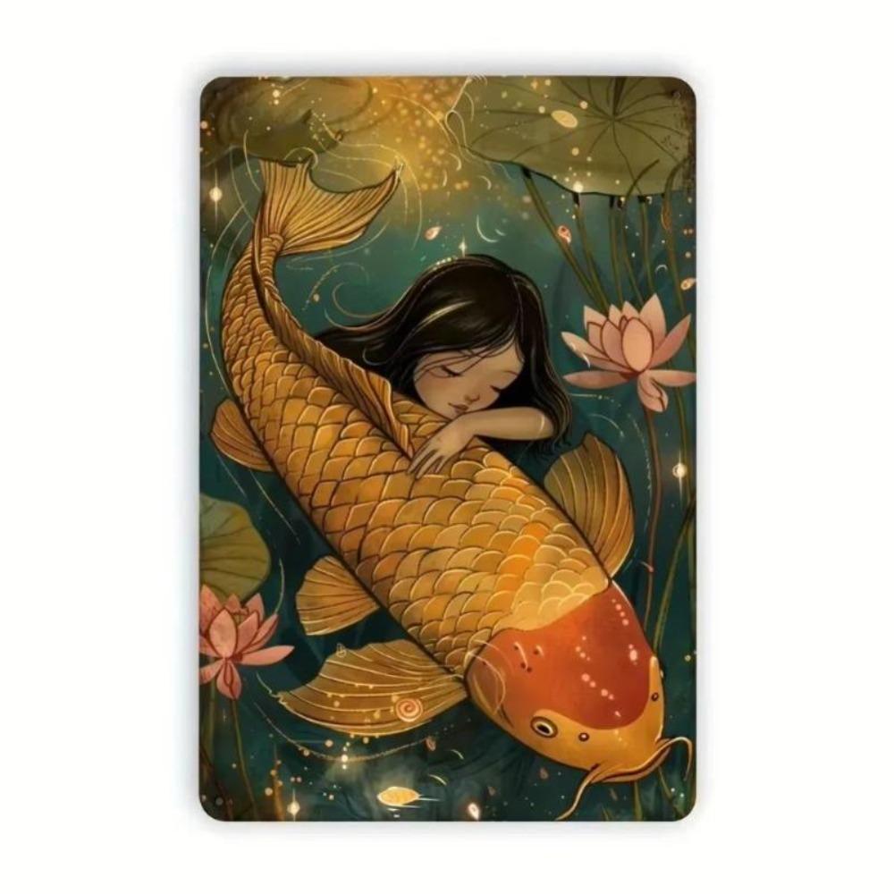 Fantasy Metal Wall Art Decor, Girl with Goldfish, 20x30cm Bedroom Sign