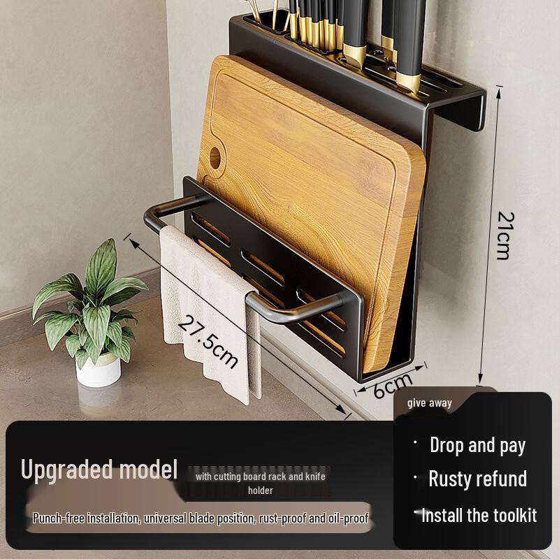 Carbon Steel Wall-Mounted Kitchen Spice & Utensil Rack