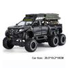 1:28 Scale UNIMOG Motorhome X-Class 6x6 U5000 Car Model Toy Sound Light Pull Back Doors Opened Off-road Vehicle Models Boys Gift