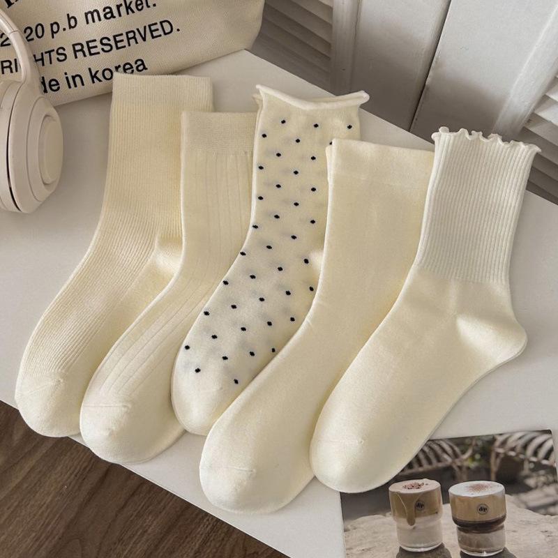 Ruffled Polka Dot Women's Crew Socks – Ins Trendy Japanese Ballet Sweet Style, Spring/Summer Solid Color