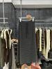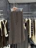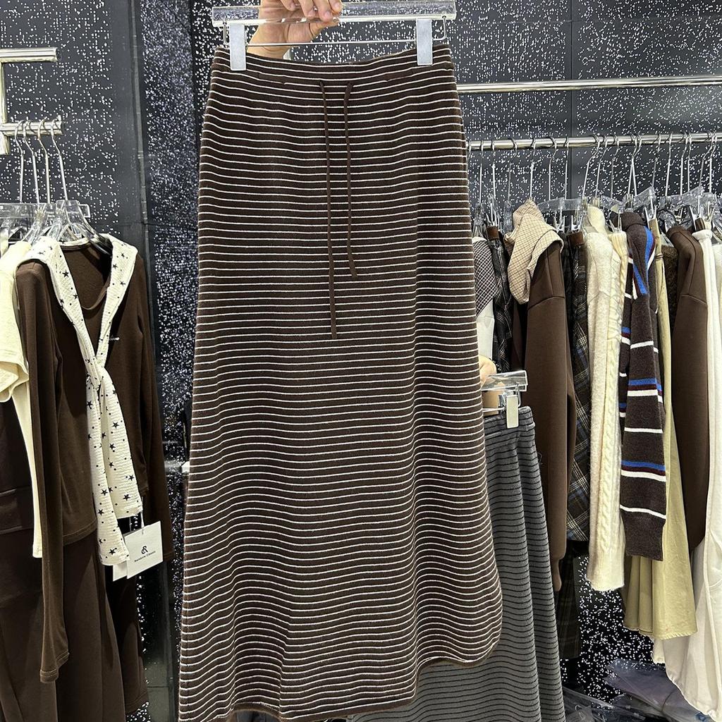 Women's Striped Knit Midi Skirt: High-Waisted, Elastic, Slimming, Back Slit, Perfect for Autumn and Winter.