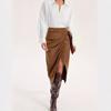 Elegant Women's Suede Skirt with Lace-up Knot - Solid Color, Spring/Autumn Collection