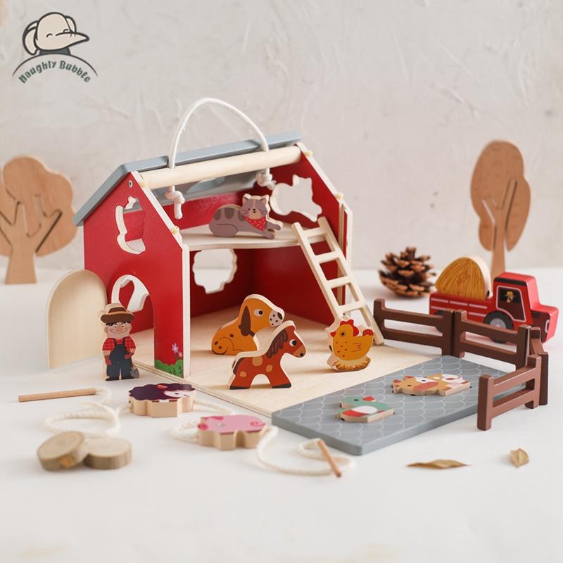 Wooden Simulated Farm Setting Scene Toys Baby Thread Toy Shape Pairs Multiple And Functional Toys Nursery Decoration Baby Gift