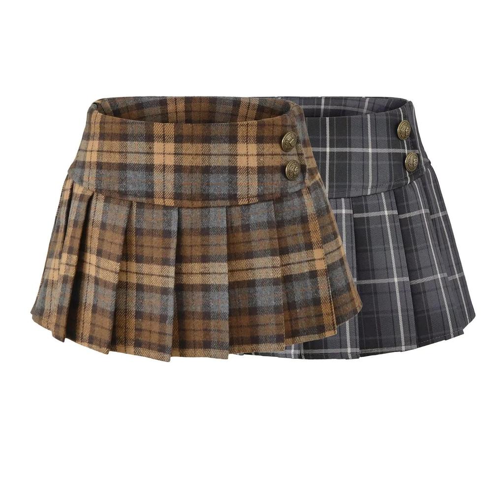 American Retro Plaid Low-Waist Pleated Skirt – 2026 Spring/Autumn College Style