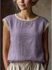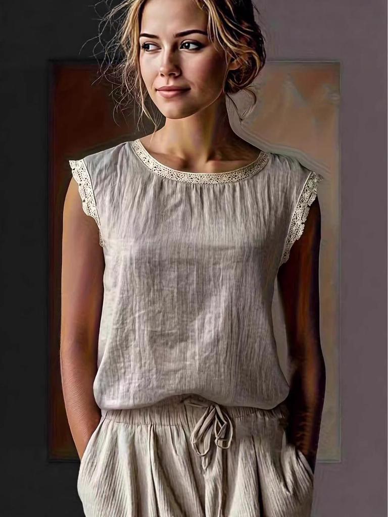 2026 New Women's Retro Loose Sleeveless Linen Shirt with Lace Patchwork