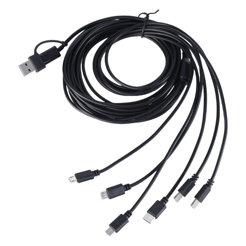 Crafted from durability PVC material, this cable features Type C connectors branching into three USB and three Type C connectors