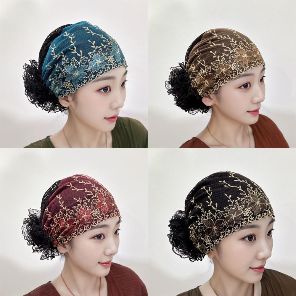Flower Embroidery Headscarf Full Cover Headband Cap New Postpartum Cap Women