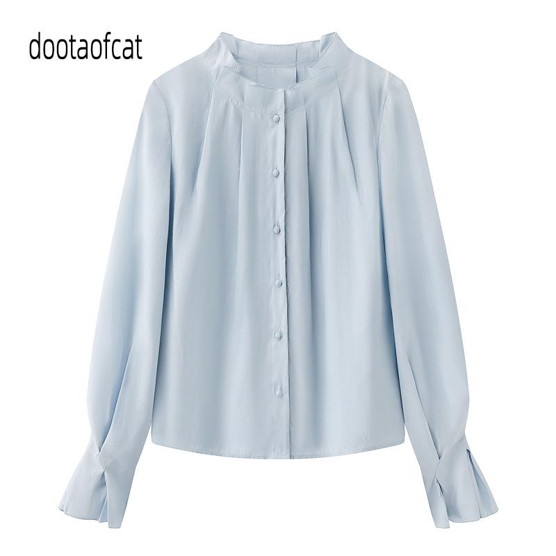 Elevate your office wardrobe with this elegant Spring Women's Light Office Blouse, crafted from breathable cotton. Featuring a chic French stand collar and regular shoulder design, this blouse offers a sophisticated silhouette. The long sleeves are perfect for transitioning between seasons, while the delicate embroidery adds a touch of femininity. Ideal for a polished yet comfortable office look, this blouse seamlessly combines style and practicality.