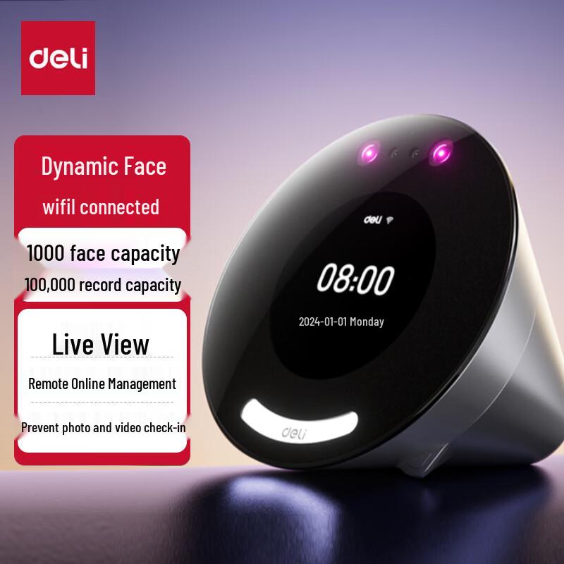Deli Smart Cloud Facial Recognition Time Clock CN plug (adapter included)