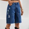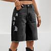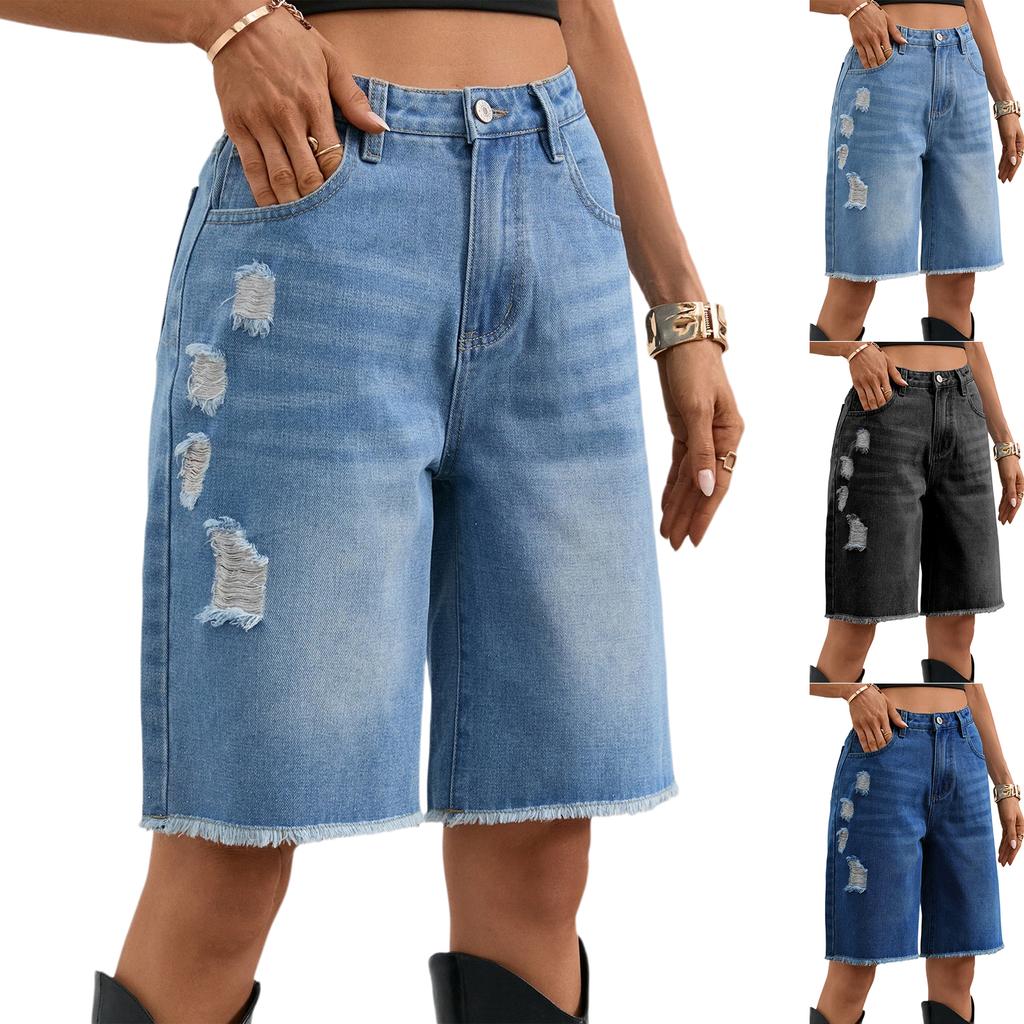 Women's Casual Color Denim Ripped Five-point Pants Fringe Jeans