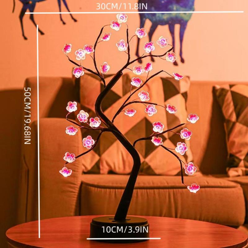 Masa Ağacı Gece Lambası USB/Pille Çalışan Dokunmatik Anahtar Yapay Bonsai Kiraz Çiçeği Masaüstü Ağacı LED Lamba Işık Dekorasyonu