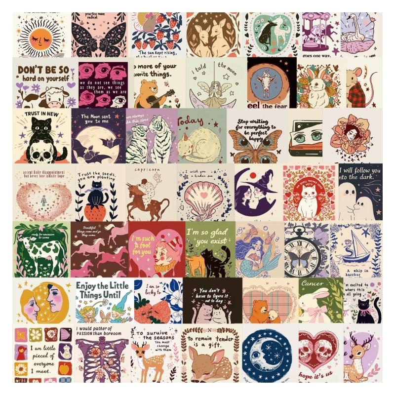 50 cartoon inspired sticker sheets crafted from premium waterproof PVC materials, offering fade resistant durability for long lasting creative expression on various surfaces.