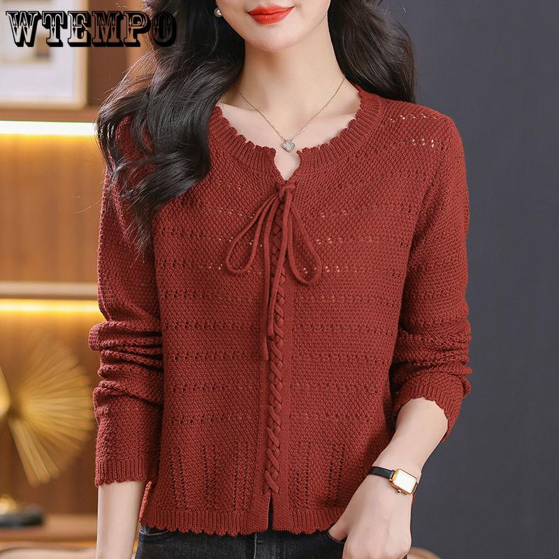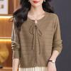 Round Neck Knitted Sweater for Women Solid Color Design Sun Protection Jacket New Lace Up Design
