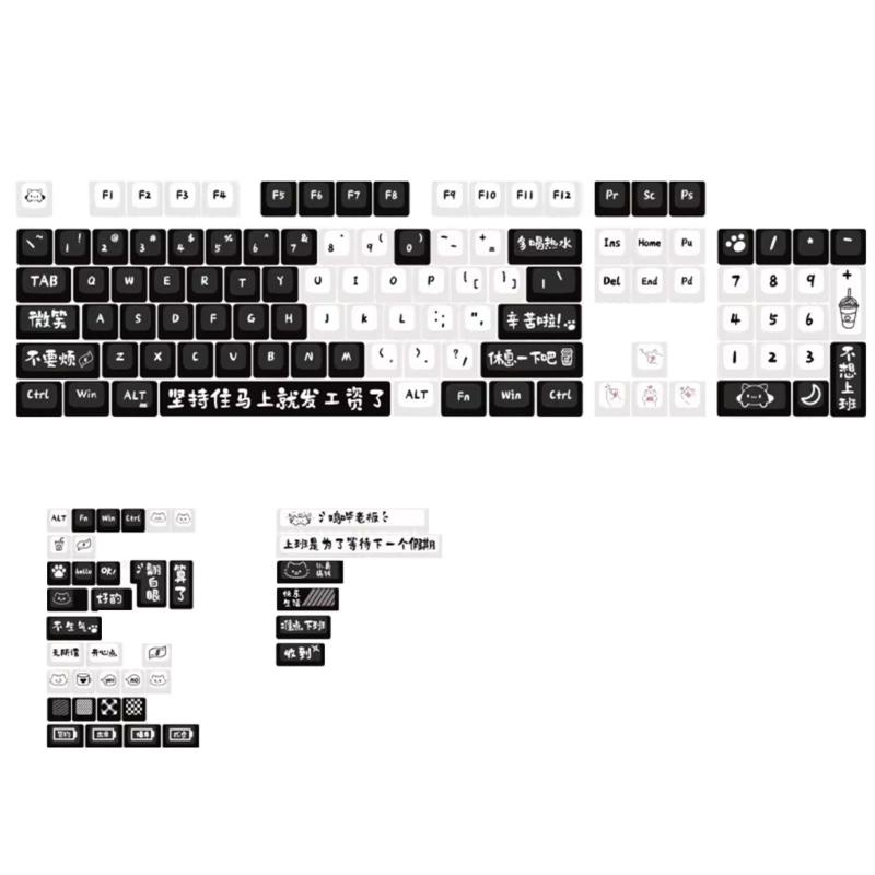 MOA Height Keycaps 135pcs Heat Sublimated Color Off Work Cats Theme Keycaps Set Customization for Mechanical Keyboards