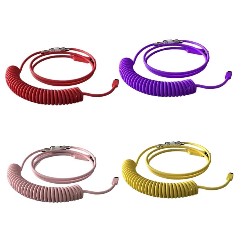 Coiled USB C Keyboards Cable Braided Detachable Aviation Type C Mechanical Keyboards Cable 1.6M
