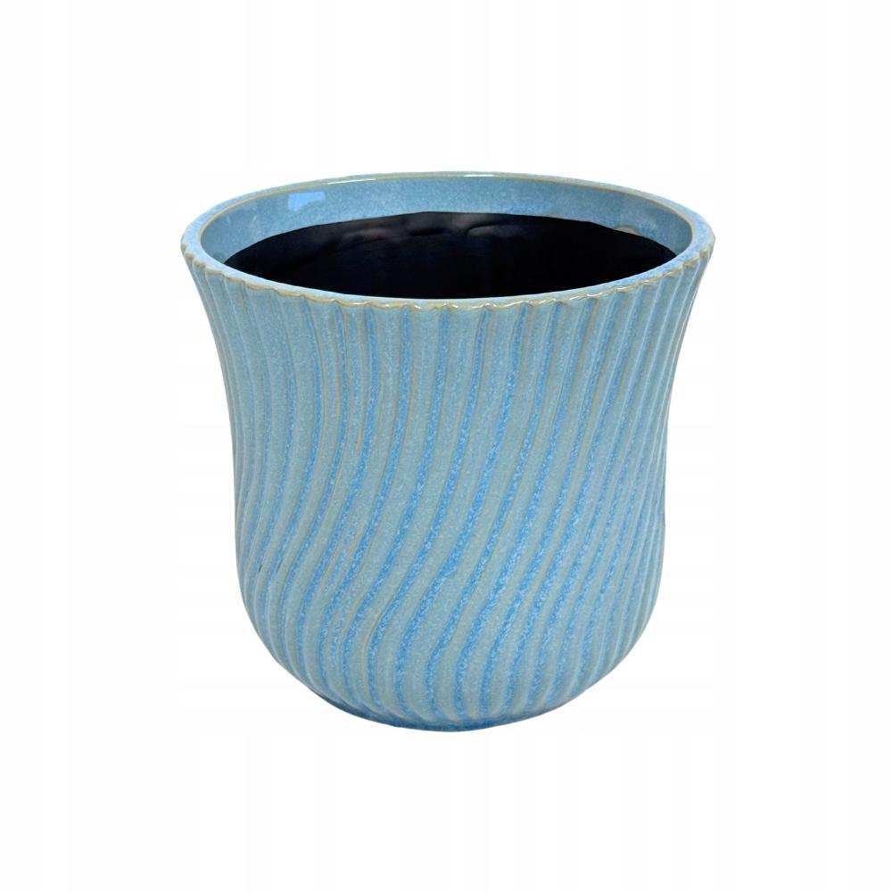 Osłonka ceramiczna na kwiatki 14 cm doniczka niebieska w prążki 1 szt.