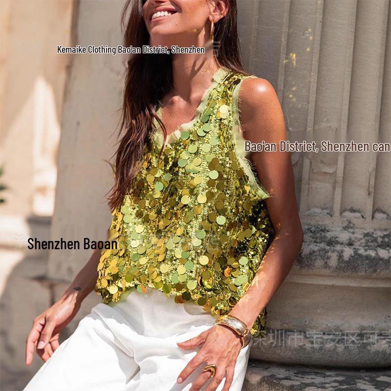 2025 Casual Spicy Girl Sequin Sleeveless Fashion Top for Women