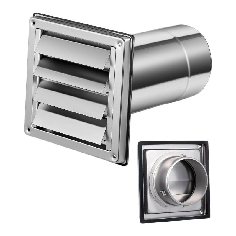 The stainless steel ventilation grille is attached to the outer wall of the exhaust systems.