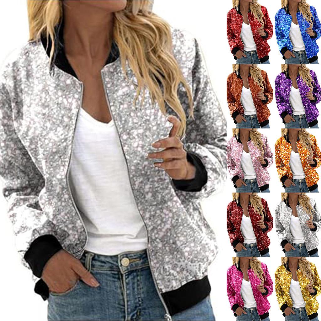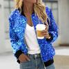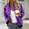 Women's Fashion Long Sleeve Sequin Print Round Neck Zip Jacket