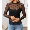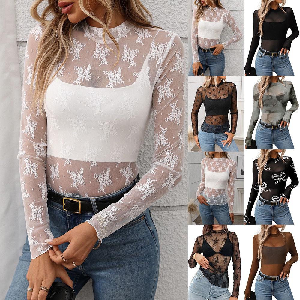 Elevate your wardrobe with this stylish high neck top, a chic blend of European and American fashion influences. Crafted from breathable mesh material, this see-through long sleeve T-shirt offers a modern Y2K vibe. Its elegant design effortlessly combines comfort and sexiness, making it a standout piece for any occasion. Perfect for layering or wearing on its own, this top is sure to become a staple in your fashion collection.