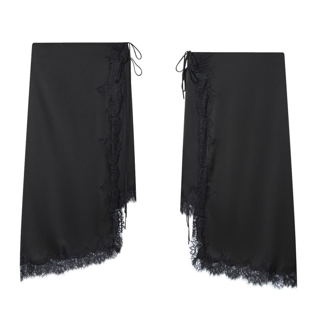 European & American Asymmetrical Lace Satin Skirt with Side Bow