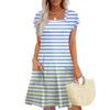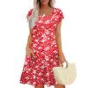 Summer Dresses For Women Loose Square Neck Cap Sleeve Casual Beach Vacation Tshirt Dress Sundresses With Pockets