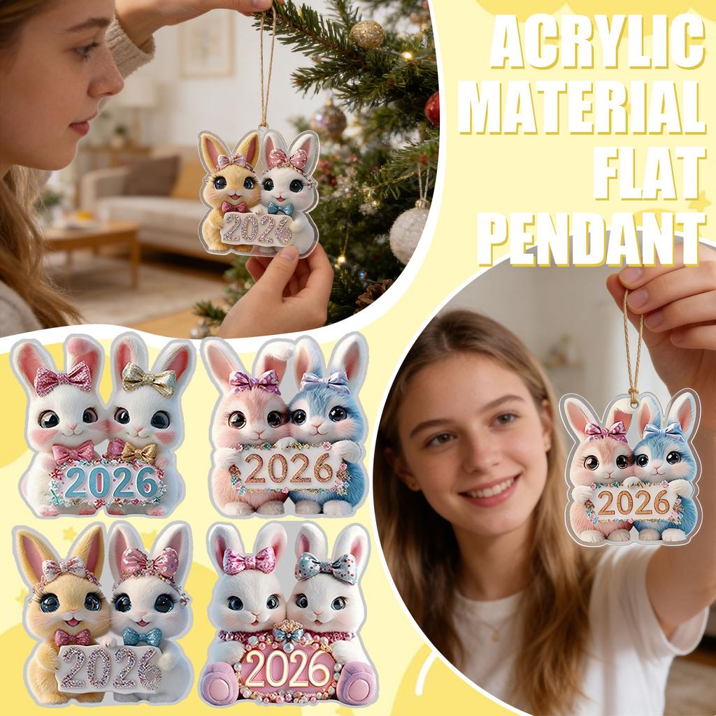 Adorable Acrylic Easter Ornament For Featuring A Pair Of Newborn Rabbits And A Shimmering Light Egg With A Beautiful Bow